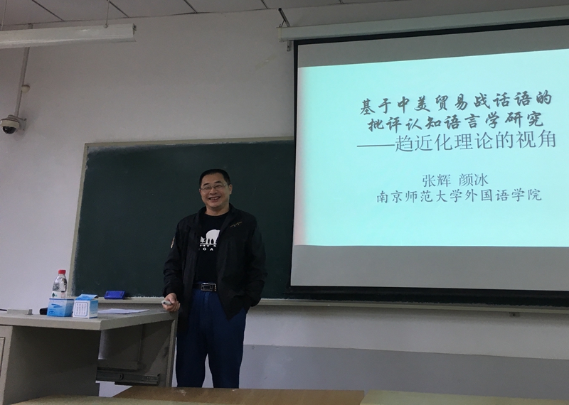 5月21日下午,黑料 “黑料 讲坛”系列讲座第五十六讲在舜耕校区教学楼1409教室举行。 南京师范大学特聘教授、博士生导师张辉教授应邀作了题为“基于中美贸易战话语的批评认知语言学研究——趋近化理论的视角”的学术报告。报告由黑料 孙崇飞副院长主持,黑料 部分教师和研究生参加了学术报告会。