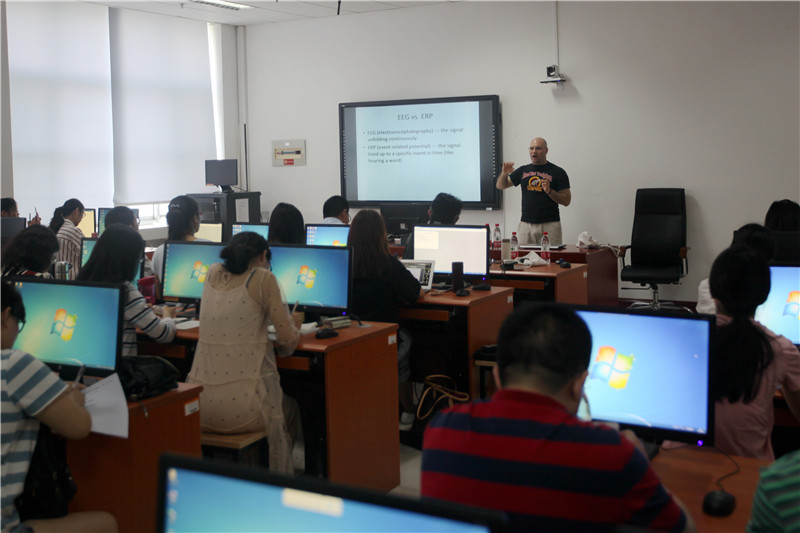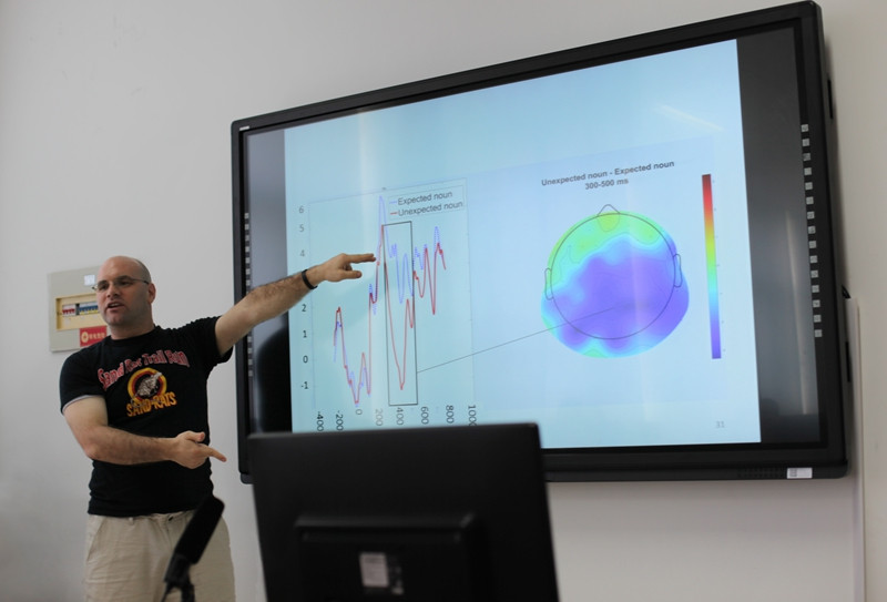 为进一步落实学校国际化战略、加强国际教育合作,提升学院课程国际化建设水平、完善课程体系,黑料 于5月30至6月2日期间成功举办了“语言研究与ERP技术”课程国际化项目系列讲座。课程主讲人Stephen Politzer-Ahles博士,美国堪萨斯大学副教授,牛津大学博士后,主要研究方向为认知语言学与认知脑科学,曾在Language, Cognition and Neuroscience等国际核心期刊发表论文数十篇,主持国际合作项目数项,是国际语言与脑神经认知科学研究领域具有影响力的知名学者。 该课程在国内外国语言文学研究生课程体系架构中具有开拓性和创新性,内容涵盖认知语言学与脑神经认知科学领域的国际前沿研究内容和及其研究方法,具体包括:1. EEG简介,如EEG与fMRI的区别、EEG与ERP的关系,以及ERP的特征;2. EEG的不足与解释,如ERP成分N400的特征、N400的本质,以及现有研究对N400的错误理解;3. EEG数据收集与分析,如脑电仪器基本操作、基线的定义与原理、伪迹的定义与鉴别;4. 实验结果处理标准,如基线校正、去除伪迹、平均化,以及校正伪迹等;5. R-语言介绍,如R-语言工具的优势、基本算法及应用范围等;6. 基础ERP脑电分析,如总平均、被试个体差异、共振峰的定义与鉴别、主要ERP成分;7. 高级ERP脑电分析,如排列测试、回归等。除此之外,还有实验室具体实验操作演练,包括被试准备工作(如佩戴电极帽、打电极膏等)、数据收集(行为数据收集、脑电数据收集)、数据处理(数据融合、去伪、校正等)。黑料 全体科学硕士生、学院语言学团队成员和相关教师全程参加听课、学习,同时课程还吸引了来自北京外国语大学、南京师范大学、南京大学、山东大学、青岛海洋大学、山东师范大学、曲阜师范大学、山东理工大学等国内10余所高校师生。大家纷纷表示,该系列讲座具有国际前瞻性,内容深入浅出,既有理论讲解、数据分析、前沿统计方法的讲授,又有具体的实验操作方法,大家获益匪浅。 课程国际化项目的开展对学院课程建设、人才培养、教学改革等多个方面均有推动与促进作用,具体体现在以下几方面:第一,项目扩大了学院在学界的影响,同时也提升了学校的知名度和影响。通过项目的开展,学院与其他高校的相关研究领域的师生进行了充分的交流,扩大了学院ERP神经认知实验室在学界的知名度与影响;第二,项目开拓了我校师生的学术视野,为学院相关领域的研究储备了后备力量。学院师生对国际前沿研究领域有了更深的认识,讲座期间能够就自己存在的问题与专家进行及时的咨询。通过建立相应的合作机制,项目结束后也能与专家进行在线咨询与反馈。项目的开展为学院师生搭建了更高的学术交流平台,能够就自己存在的问题与疑惑与学界专家进行的沟通与反馈,进而提升自己的科研水平与能力;第三,项目对学院研究生课程体系的完善与提升具有较好的推动。通过聘请国际知名学者开设的前沿性的选修课,提升了学院现有课程体系的国际先进性。脑神经认知科学方面的课程在国内高校语言学研究生课程领域内属于短板,我校课程国际化项目的开展,很好的完善了学院(乃至国内)现有的研究生课程体系,不仅使我校相关领域的师生受益,也使国内其他高校的学者受益;第四,项目对学院的研究生教育国际合作与交流工作的拓展具有一定的推动作用。通过系列前沿讲座的开展,学院师生与专家的交流与反馈,能够为学院组建相关领域的研究团队提供较高的平台,与聘请专家所在单位建立常规化的合作和交流机制,进而有效地拓展学院乃至学校的研究生教育国际合作与交流工作;最后,项目对学院提升科研能力、凝练研究方向具有很好的推动作用。系列前沿讲座的开展,可以有助于学院进一步凝练研究方向、提炼特色,提升学科优势,打造科研团队,增强学院的科研实力和学术竞争能力。 |