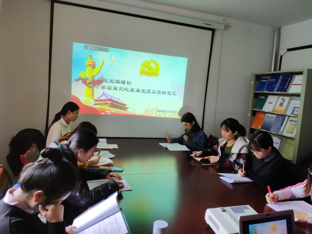 齐老师介绍了本学期党员发展工作的安排,认真讲解了政审函调信的格式和基本要求、同时她对各类党员材料规范填写及注意事项进行了细致说明。