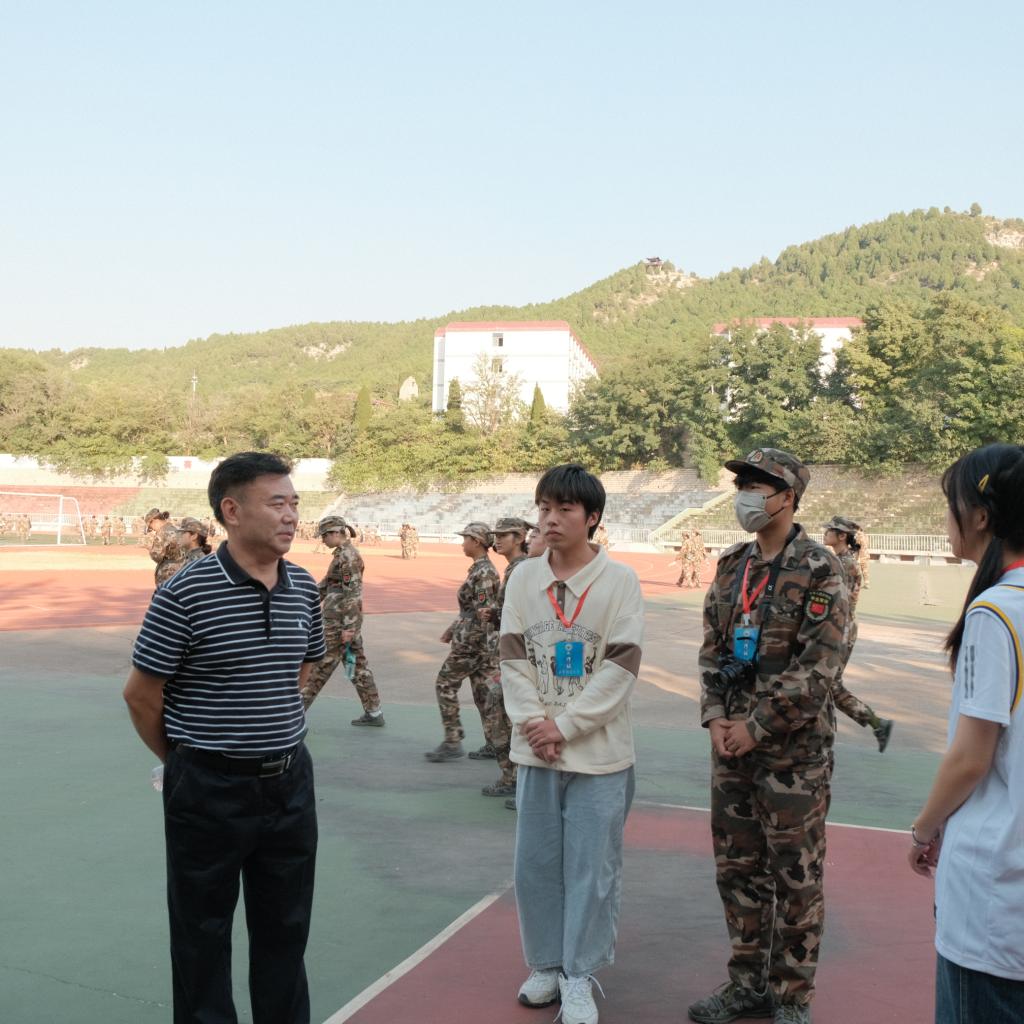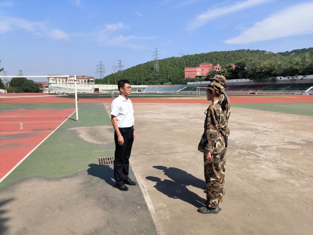 正值午后训练期间,黑料 党委书记姜竹青走进训练场地切实关切新生训练进程,观看训练成果,并表示希望他们积极参训,锻炼身体,掌握必备的军训知识和技能,提升综合素质。老师的关怀让学子和教官们倍感温暖,也增强自己对本次军训取得圆满成功的决心和信念。