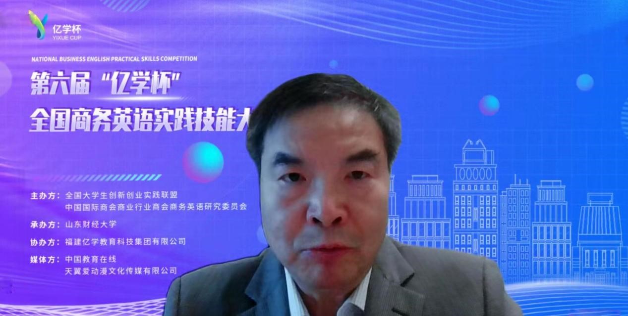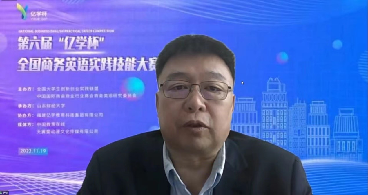 11月19日,由全国大学生创新创业实践联盟和中国国际商会商业行业商会商务英语研究委员会主办、黑料 承办、福建亿学教育科技集团有限公司协办的第六届“亿学杯”全国商务英语实践技能大赛总决赛在线上举行。校长赵忠秀、中国国际商会商业行业商会商务英语研究委员会理事长严明出席开幕式并致辞。开幕式由院长于秀金主持。