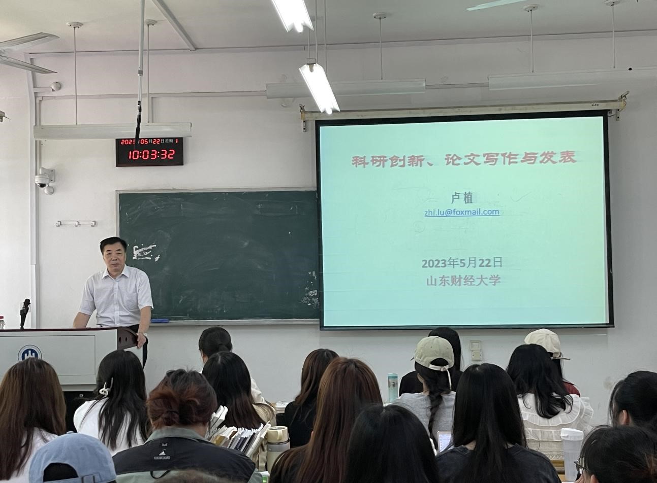 5月22日上午,广东外语外贸大学云山杰出学者、二级教授、博士生导师卢植教授应邀莅临黑料 “黑料 讲坛”第一百四十九讲,作了题为“科研创新、论文写作与发表”的学术报告。报告由院长于秀金主持,黑料 部分教师和研究生聆听了本次报告。