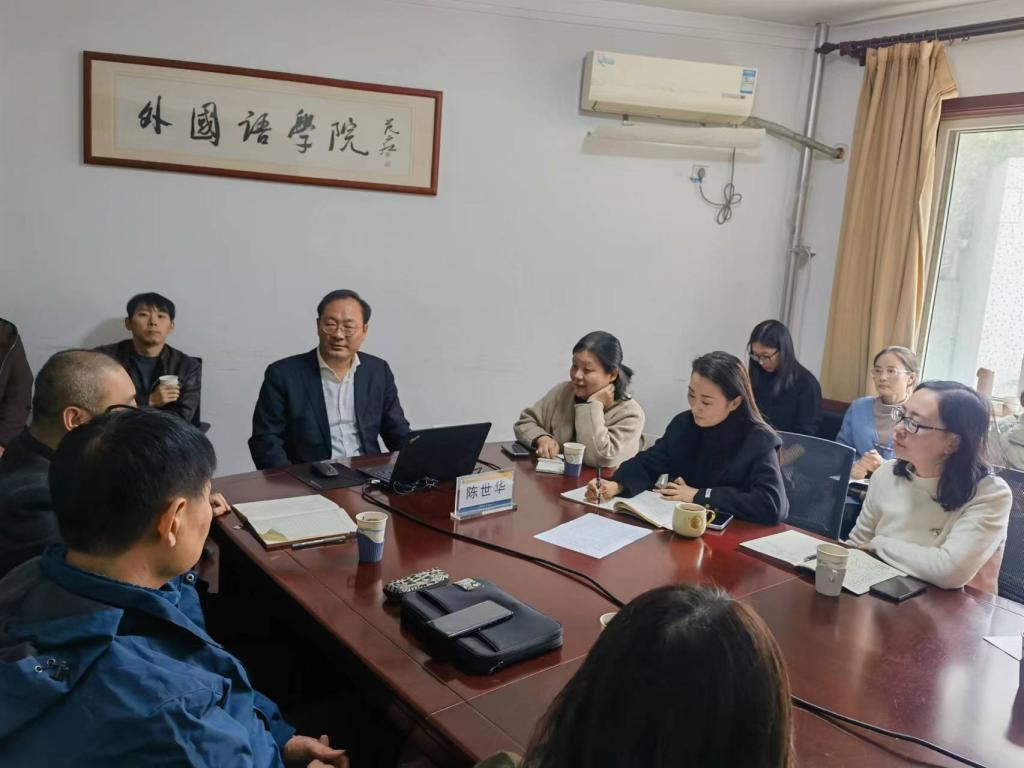 11月9日上午,南京工业大学外国语言文学学院院长、三级教授、扬州大学博士生导师陈世华教授应邀莅临黑料 “黑料 讲坛”第一百五十二讲,作了题为“外语学科跨学科发展:趋势、方向与问题”的学术报告。报告由院长于秀金主持,院长助理冯晶、张斐瑞、聂喆及部分教师聆听了本次报告。