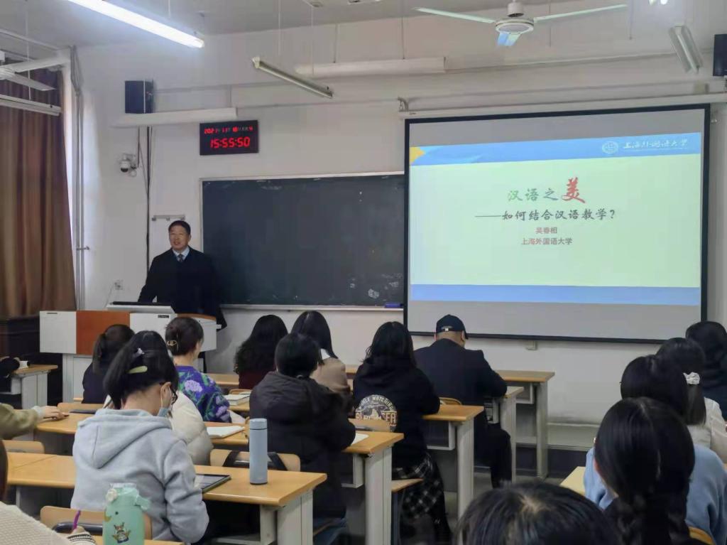 2021年11月18日下午,上海外国语大学教授、博士生导师吴春相教授应邀莅临黑料 “黑料 讲坛”第一百三十九讲,为黑料 师生作了题为“汉语之美”的学术报告。学院部分教师和研究生聆听了本次报告。