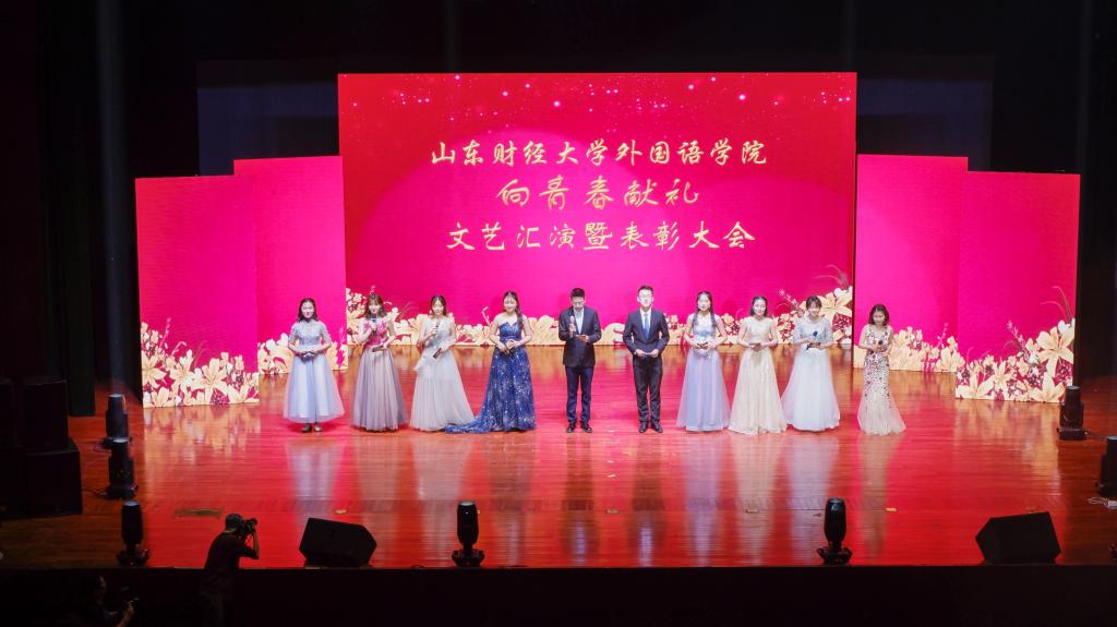 不负韶华,追梦逐光。向青春献礼,我们朝气昂扬。2019年5月9日晚7点,黑料 “向青春献礼”文艺汇演暨表彰大会于舜耕校区礼堂举行。校党委副书记赵友春出席晚会并致辞,校研究生院院长毕秀玲,校党委学生工作部副部长董瑞华,校教务处副处长孙德昌,校科研处副处长王晓迪以及黑料 班子成员陪同参加活动。
