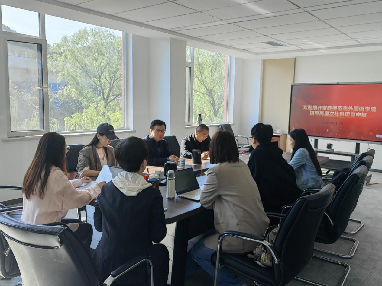 4月12日上午,上海外国语大学胡开宝教授对黑料 的高层次项目申报进行了指导。院长于秀金教授及黑料 教师参加了此次指导会议。