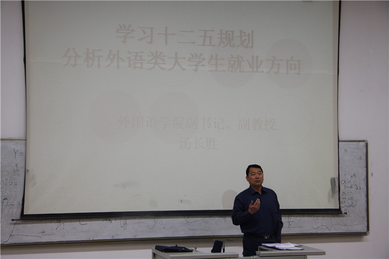 (通讯员:朱维霞)五一过后,初夏的气息愈加浓烈,08级学生的大三下学期也已悄然过半,大家在接近毕业的同时也因为难以抉择的未来道路而迷茫徘徊。为扩展学生视野,深入了解社会,黑料 党总支副书记汤长胜于5月4号在第一阶梯教室进行了一场题为“学习十二五规划,分析外语类大学生就业方向”的报告。