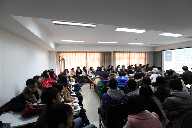 12月4日上午,应黑料 的邀请,河南大学校长助理、博士生导师张克定教授在舜耕校区国际交流中心601室作了一场题为“科研与创新”的学术报告。张克定教授兼任中国语用学研究会副会长、中国功能语言学研究会常务理事、中国认知语言学研究会常务理事、中国英语教学研究会常务理事等学术职务。主要研究方向为功能语言学、语用学、对比语言学。主持国家级和省部级研究课题多项,在《外语教学与研究》、《外国语》等一流期刊发表多篇学术论文,出版《英汉语信息结构对比研究》等多部重要著作,并多次获得河南省社科优秀成果奖一等奖。
