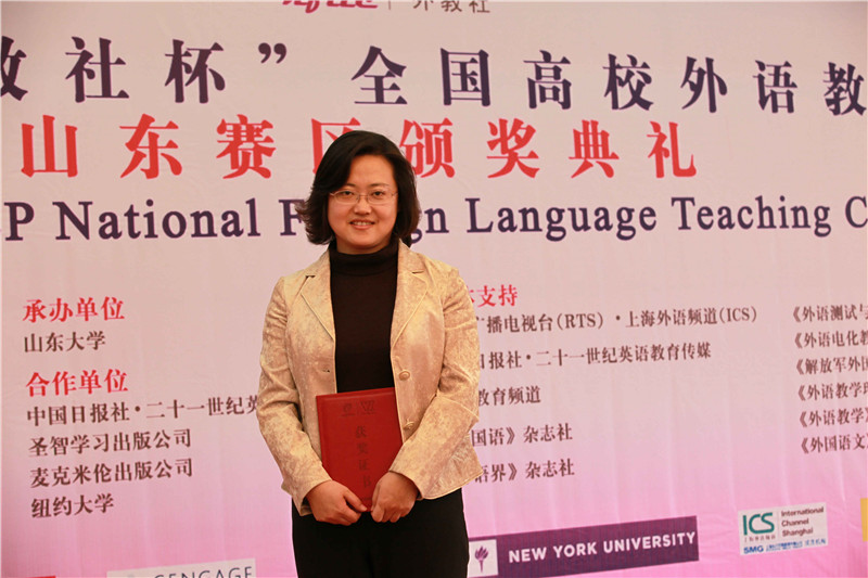 近日,第三届“外教社杯”全国高校外语教学大赛山东赛区决赛在山东大学圆满落幕。我校黑料 推荐的英语专业教师解玲副教授凭借扎实的基本功和出色的课堂驾驭能力,一路过关斩将,最终荣获一等奖第一名,为我校赢得了荣誉。