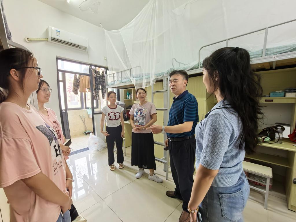 为帮助新生们尽快适应校园生活,院党委书记姜竹青、党委副书记陈海、辅导员郝广丽于新生报到当天走进宿舍,与同学们亲切交谈,详细了解他们的生活情况,询问他们对大学生活的感受和期望。
