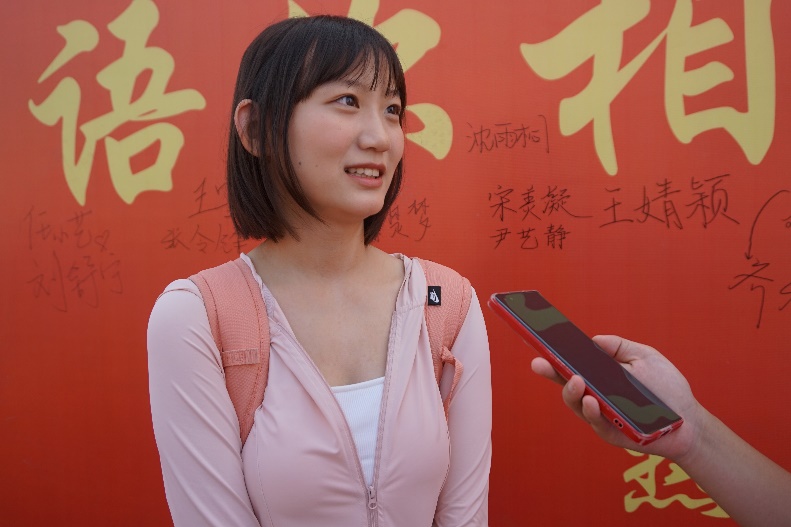 新生王婧颖同学表示初入大学校园的心情是非常激动,希望自己在大学努力学习专业知识,提升自身竞争力,同时能积极参加课外活动,丰富大学生活。