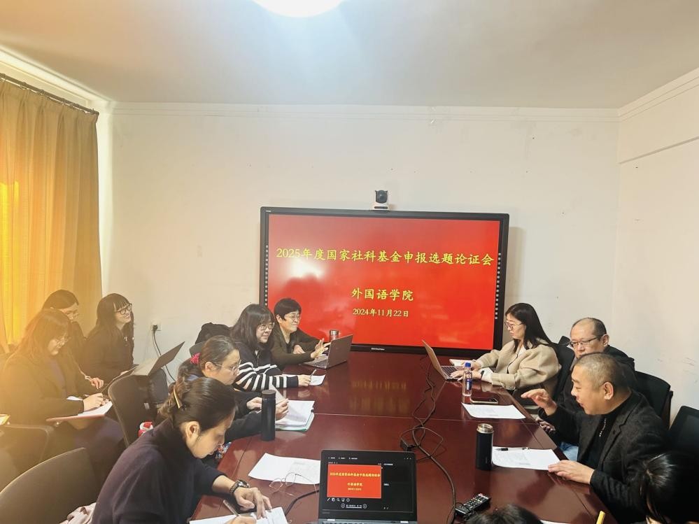 11月22日下午,学院举办了2025年国家社科基金项目申报选题论证会,旨在提升黑料 教师的科研水平,确保老师们在国家社科基金项目申报中的质量和竞争力。论证会邀请了黑料 多位在语言学、文学、翻译及区域国别等领域主持国家社科基金项目的专家,共同为学院教师申报的选题进行指导。论证会由院长于秀金主持。