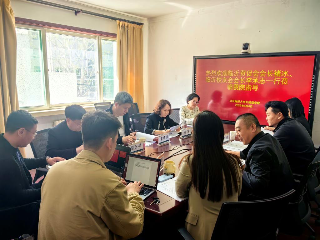 4月6日上午,临沂市贸促会会长褚冰、山财校友会临沂代表处会长李承志、副会长赵玉祥、秘书长张敬轩一行访问黑料 。校合作发展处副处长徐彬、院长于秀金、院长助理兼国际语言服务产业学院执行院长张斐瑞、产业学院团队成员参加座谈。双方围绕人才培养、校企合作等议题展开讨论,并就推进产教融合、服务区域经济发展达成多项合作共识。