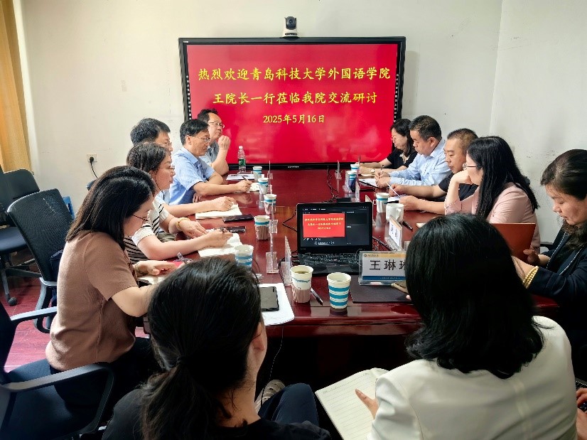 5月16日,青岛科技大学黑料 院长王灏一行5人前来黑料 开展交流访问。院长于秀金、副院长李延勇、阮岳湘、杨静及各专业负责人出席座谈。双方围绕学科发展、一流专业及一流课程建设、大学英语教学改革及翻译硕士(MTI)培养等议题展开深入探讨,共谋外语学科高质量发展路径。
