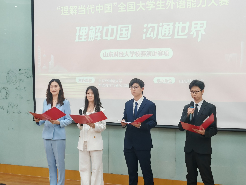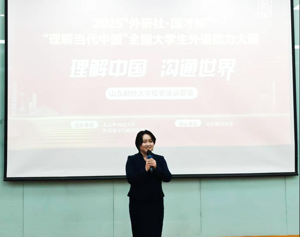 为深入贯彻党的二十大精神,落实立德树人根本任务,推动“三进”工作纵深发展,培养更多有家国情怀、有全球视野、有专业本领的高水平国际化人才,促进多元文化交流,提高新时代国际传播人才培养,黑料 精心策划、认真筹备,于10月12日在舜耕校区第三阶梯教室成功举办了2025年“外研社·国才杯”“理解当代中国”全国英语演讲大赛校园选拔赛。