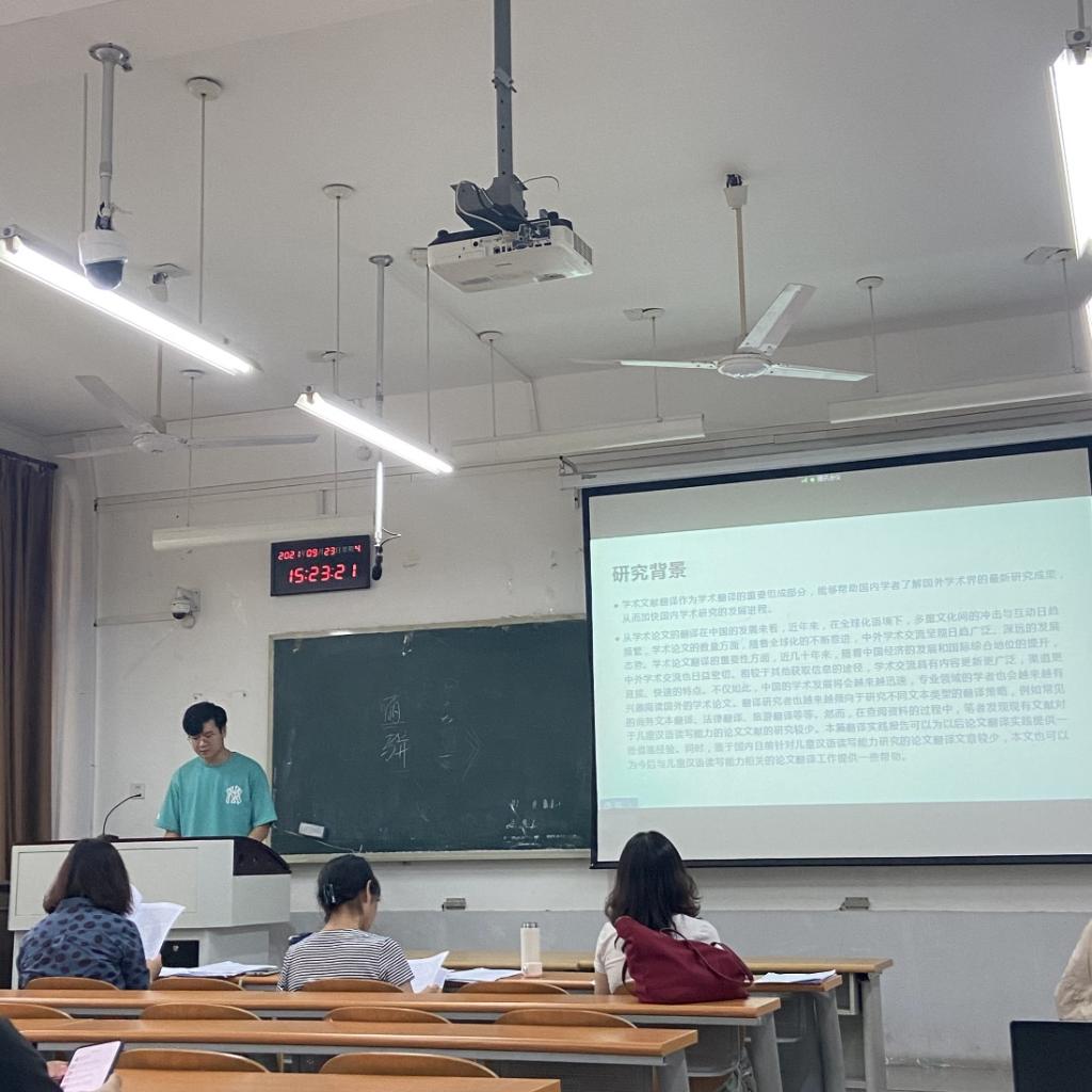 2021年9月23日下午,黑料 2020级翻译硕士研究生开题论证会于舜耕校区举行。2020级英语笔译、英语口译专业的40名研究生参加了本次论证会,学生就论文选题的研究意义和价值、研究状况及拟解决的问题、研究方案和进度等作出说明,并进行可行性论证。经专家组论证,全部学生通过了本次论文开题。