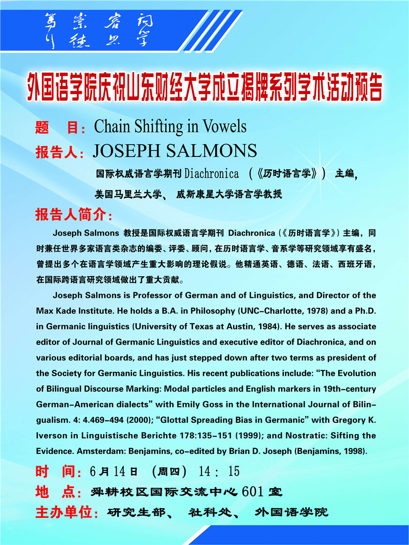 外语学术论坛—系列讲座之五 《漫谈英汉对比与翻译》
