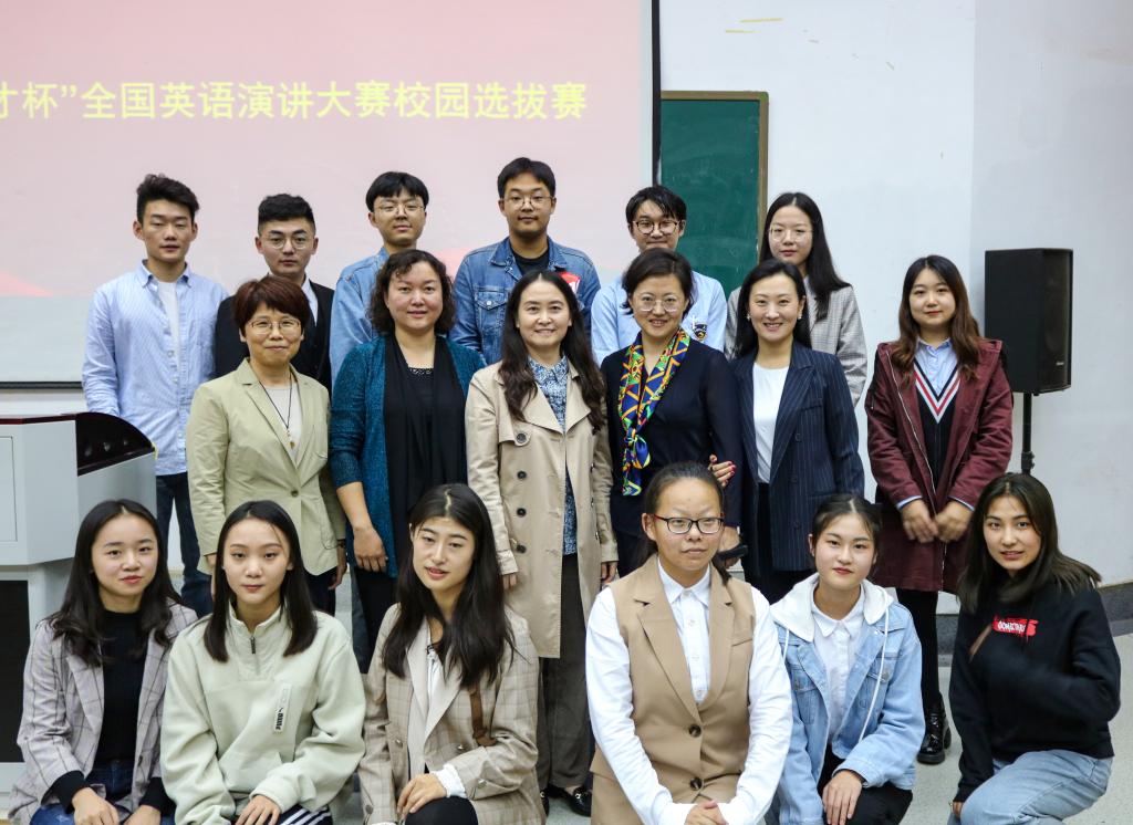 2019年10月11日下午,黑料 第六届外语技能系列大赛暨“外研社·国才杯”全国英语演讲大赛校园选拔赛在舜耕校区第二阶梯教室举行。高永红、马宏伟、王朋、解玲和张斐瑞五位老师担任评委,2018级英语专业于淑涵和2017级英语专业王哲娴担任主持人,黑料 各年级同学观摩了演讲比赛。